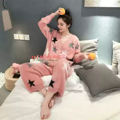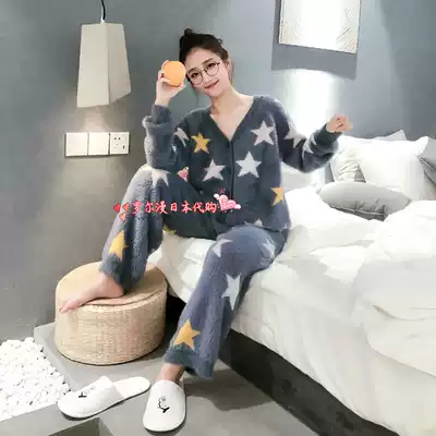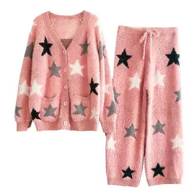soft honey mink velvet cardigan soft pajamas women's autumn and winter stars home suit