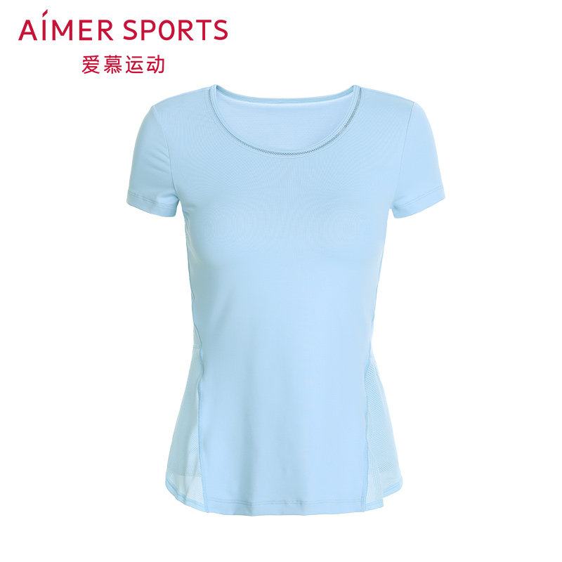 AIMER Sports Autumn Winter New Products Shuchan Yoga Light Thin Round Tie Cups Mesh Down Women T-shirts AS143H11