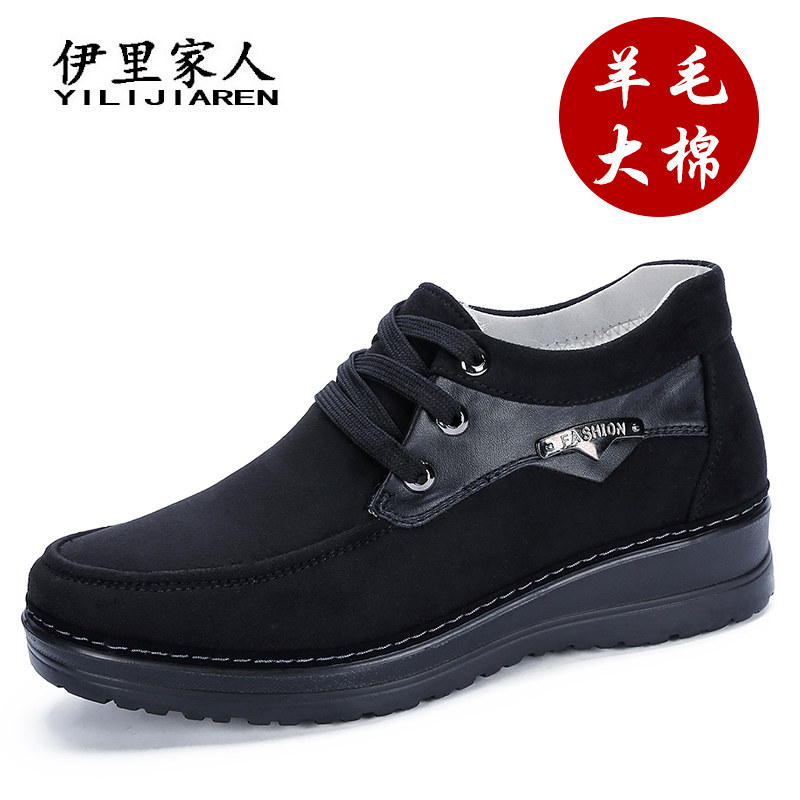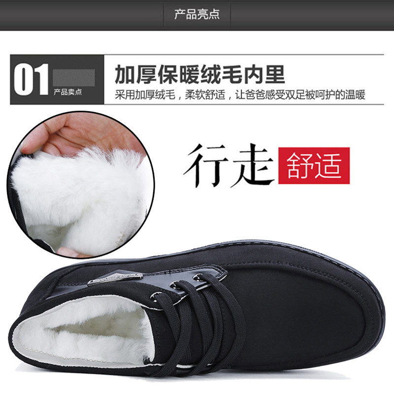 Fur-integrated old Beijing cloth shoes large size for old people Northeastern cotton shoes men's wool thickened with velvety warm dad shoes