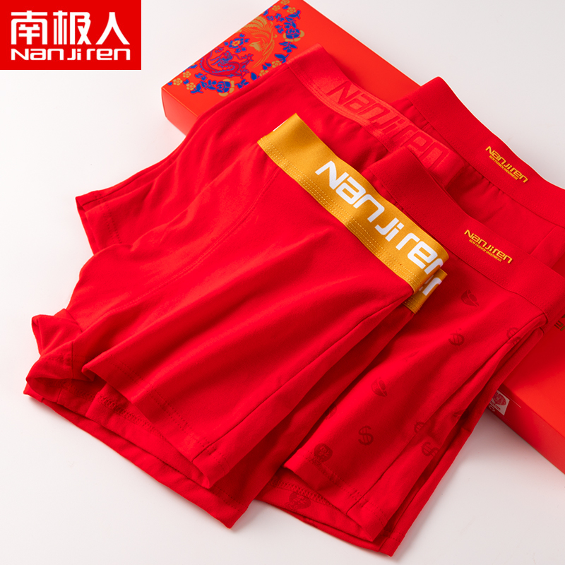 South Pole man's life men's underwear pure cotton men's flat corner pants wedding big red young rat year red four-corner pants head