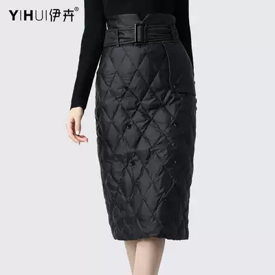 Down skirt medium and long version of A- line dress women's high waist slim hip skirt plus velvet thickened winter fashion one-step skirt