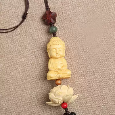 Natural boxwood Lotus Guanyin Car pendant Car interior Car pendant Rear mirror Car pendant