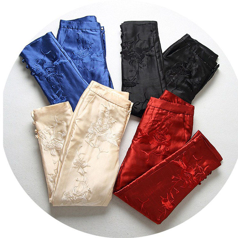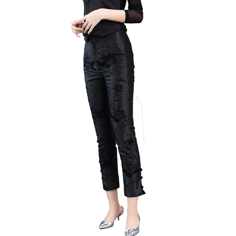 Pants women's autumn and winter cotton padded thick fashion retro embroidery with cheongsam top wearing small feet nine-point pants