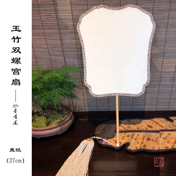 Ink Qinglian jade bamboo mahogany palace fan Chinese style Chinese painting Gongbi painting Cooked silk Silk palace fan Hand-painted ancient fan