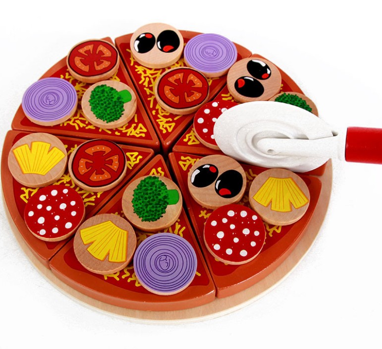 Foreign Trade Wood-emulated Vegetable Shiitake Mushrooms Pizza Chiche looks at the simulation Dining Home Wine Toy Cooking cooking Cooking Toy Sets sets
