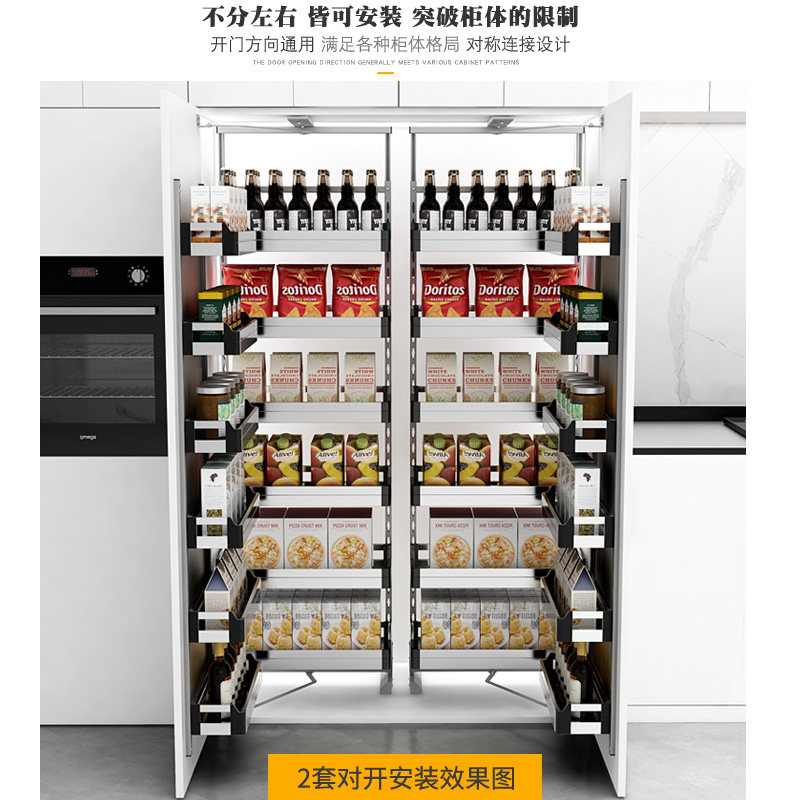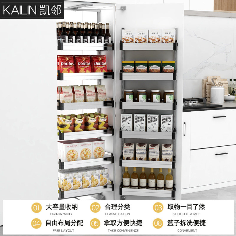 Kay Ortho Kitchen Cabinet High Cabinet Pull Basket Large Monster Light Cabinet Snacks Linkage Seasoned Basket Multilayer Storage High Deep Pull Basket-Taobao