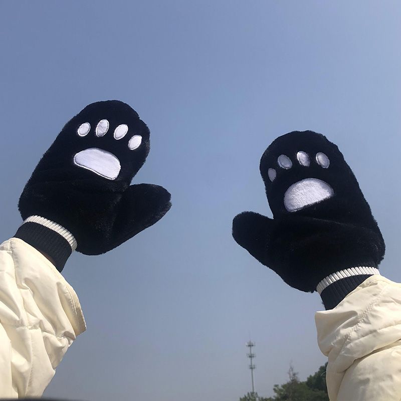 Gloves female winter cat paw plus thickening tide cute students hang neck in Han Edition even refers to warm cycling gloves