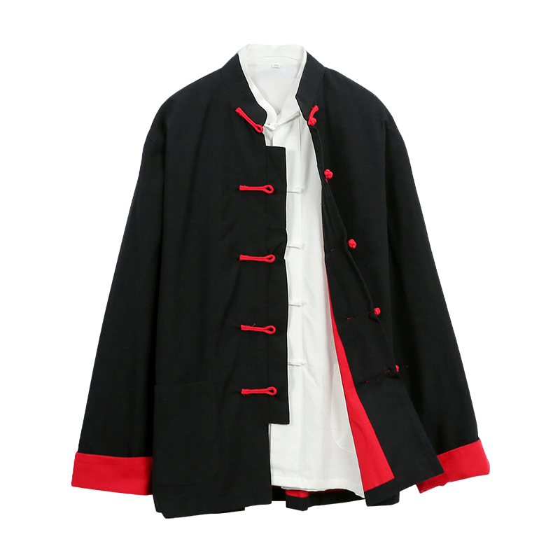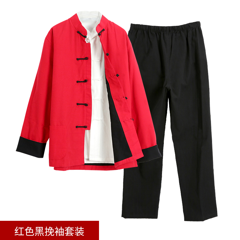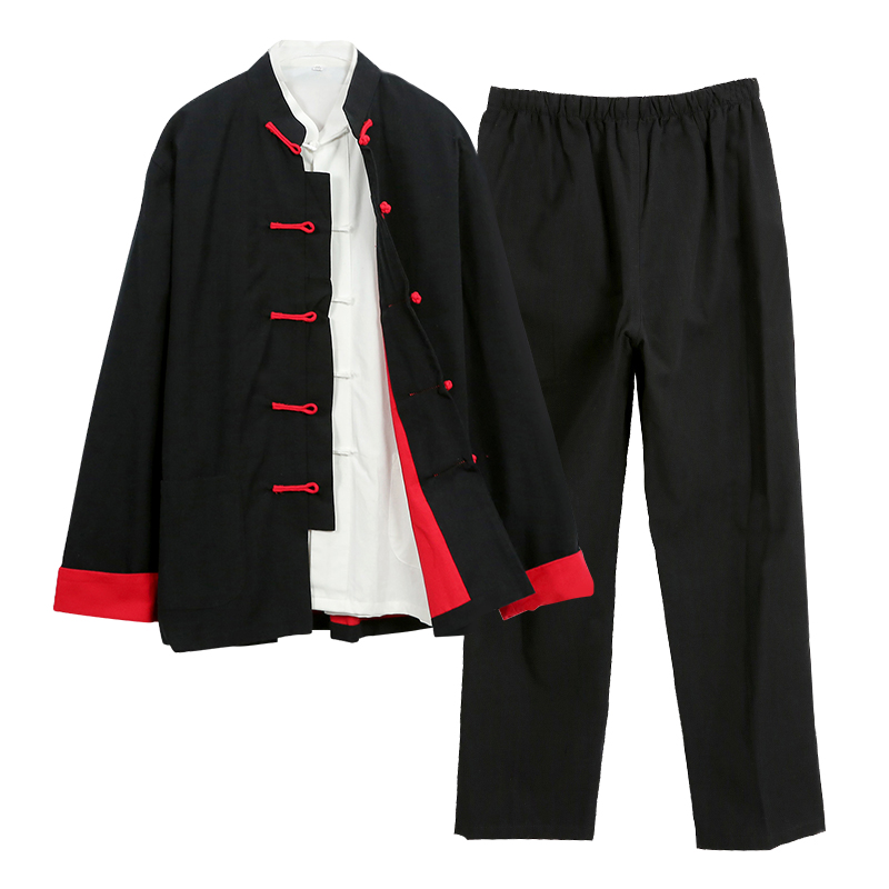 Pure cotton coarse cloth Tang loaded with male double layer Three sets of ancient windy mansuit Zen meditation conserved tea suit retro Chinese wind