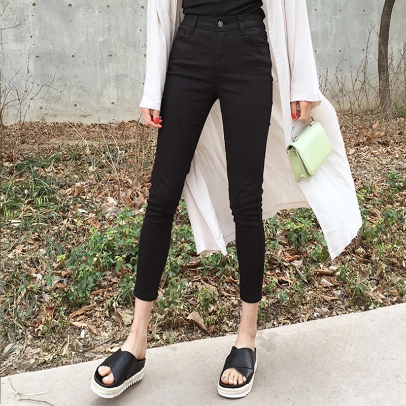 Black jeans women high waist nine pants spring and autumn 2023 new winter slim tight pencil long trousers