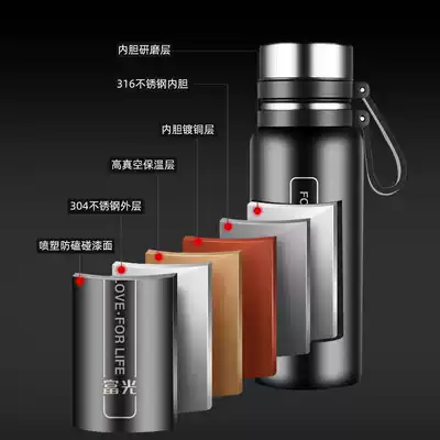 Fulight 316 stainless steel thermos cup for men and women large volume bottle students simple portable water cup tea cup 600ml