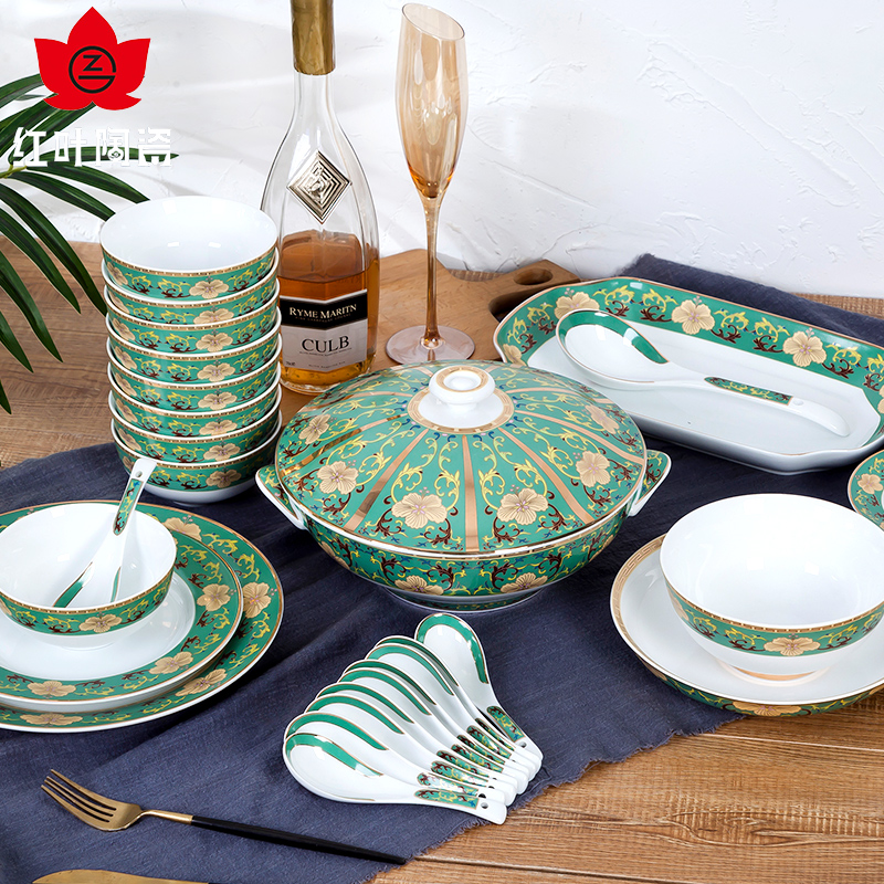 Autumn leaf Jingdezhen dishes and plates set household tableware ceramic gifts Chinese light luxury Phnom Penh high-grade porcelain