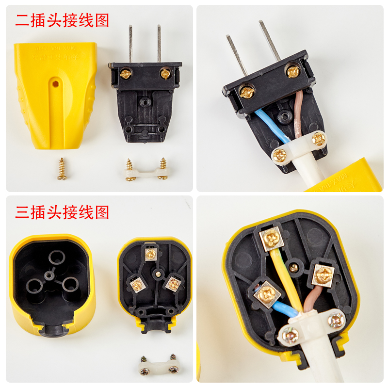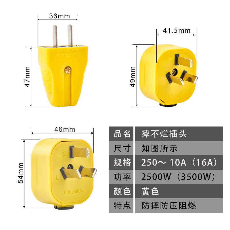 Drop not bad plug 16A without wire engineering high-power three-hole plug 10A two-hole detachable drop socket head