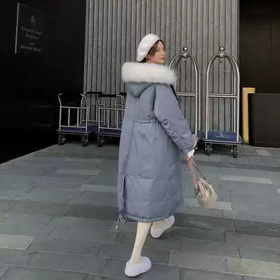 Lan language big size women's fat sister mm2021 winter clothes New Age reduction big hair collar coat hooded down jacket thickened