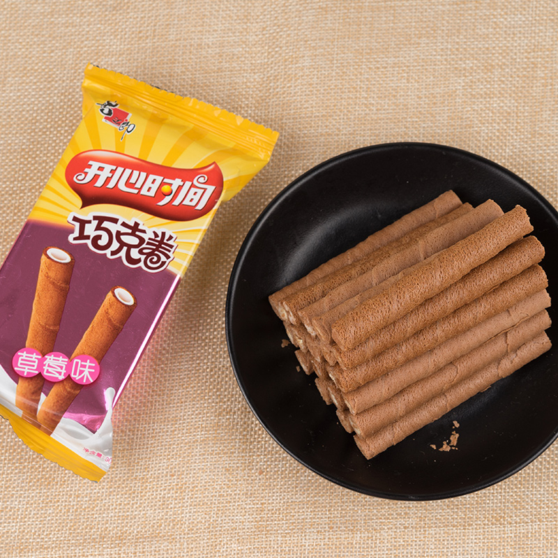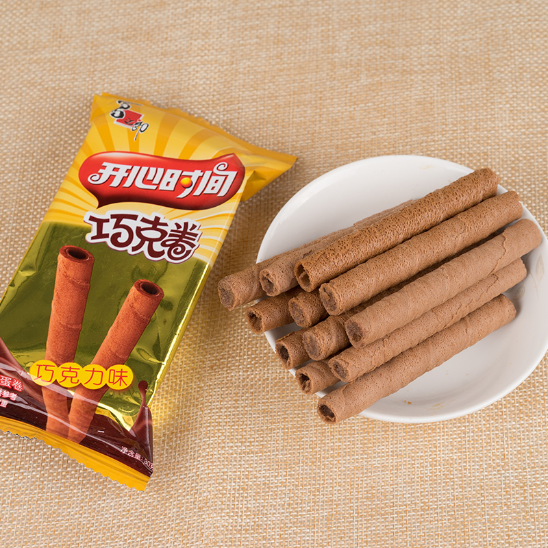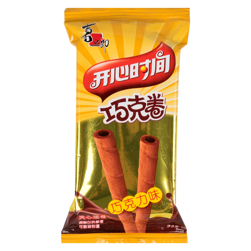 Happy time with fun time Qiaoku 30g sandwich Milk Chocolate Curly curly notes Crisp Curly and Crisp Egg Roll