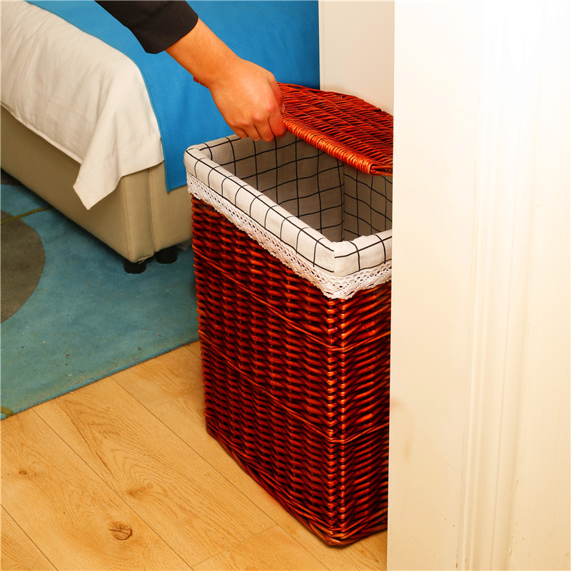 Brown basket with lid Coffee plaid cloth cover with lid brown basket White plaid cloth cover with lid brown basket Cotton and linen floret cover with lid brown basket Eiffel Tower cloth cover with lid brown