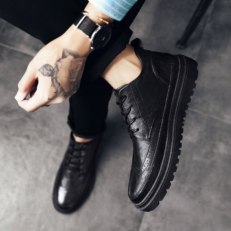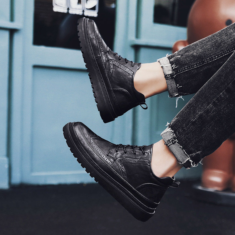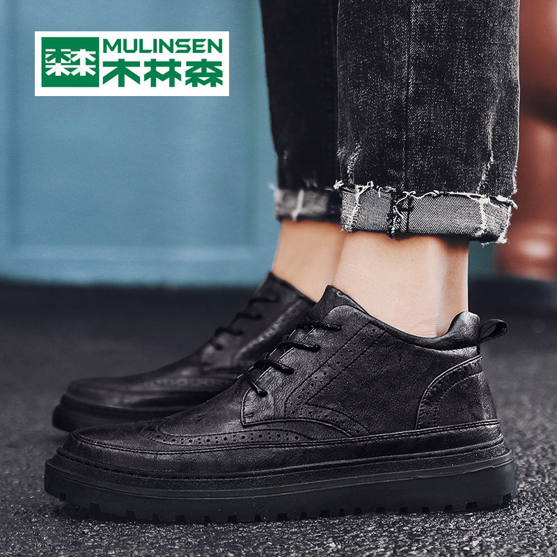 Mulinsen cotton leather shoes men's winter business casual men's shoes British style plus velvet warm high-top shoes thick-soled Martin boots