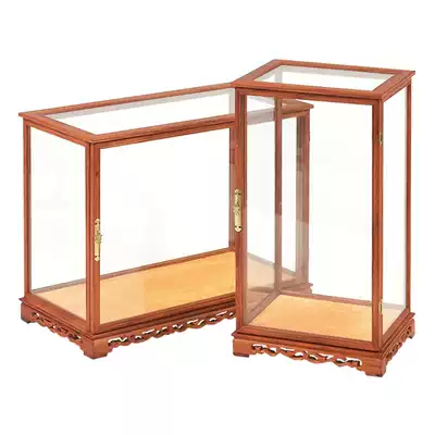 Redwood glass cover solid wood carved pear transparent vase strange stone base Buddha statue display ornaments dust cover customization