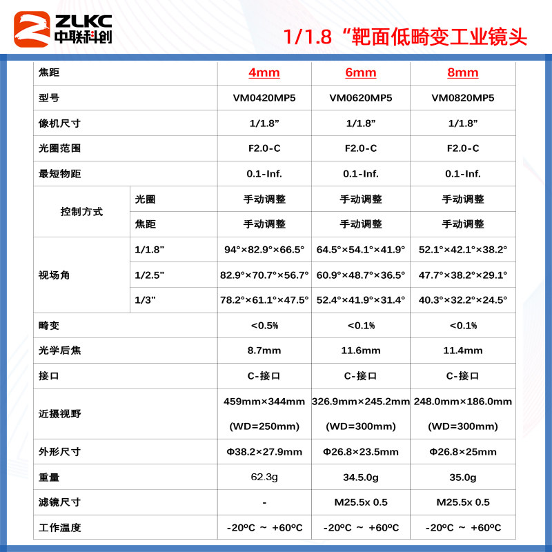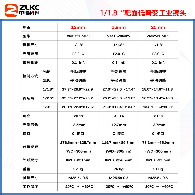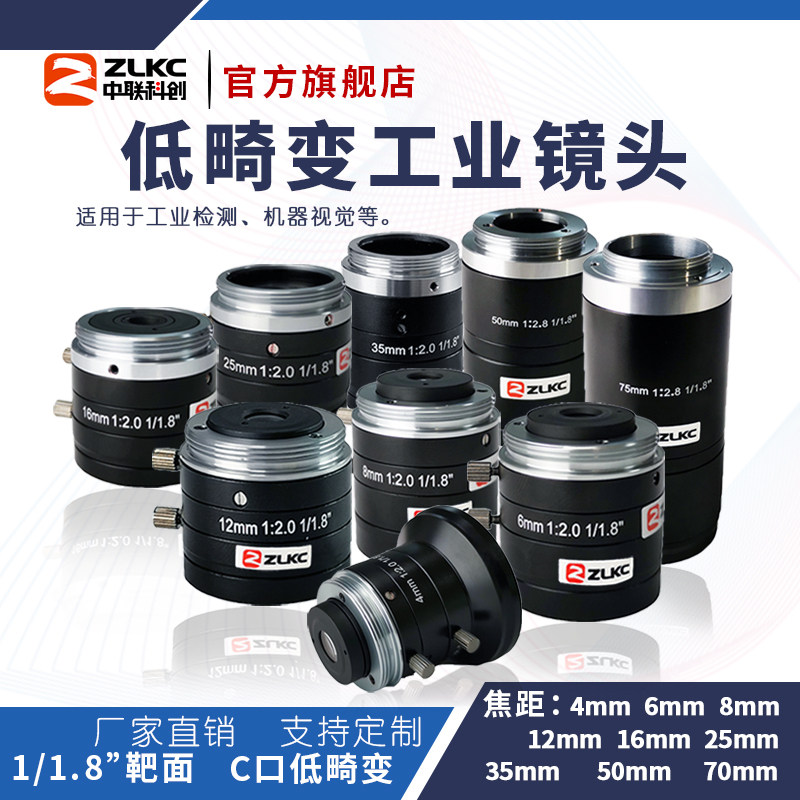C-mount industrial lens 4mm12mm75mm manual aperture fixed focus lens 5 million camera lens FA no distortion