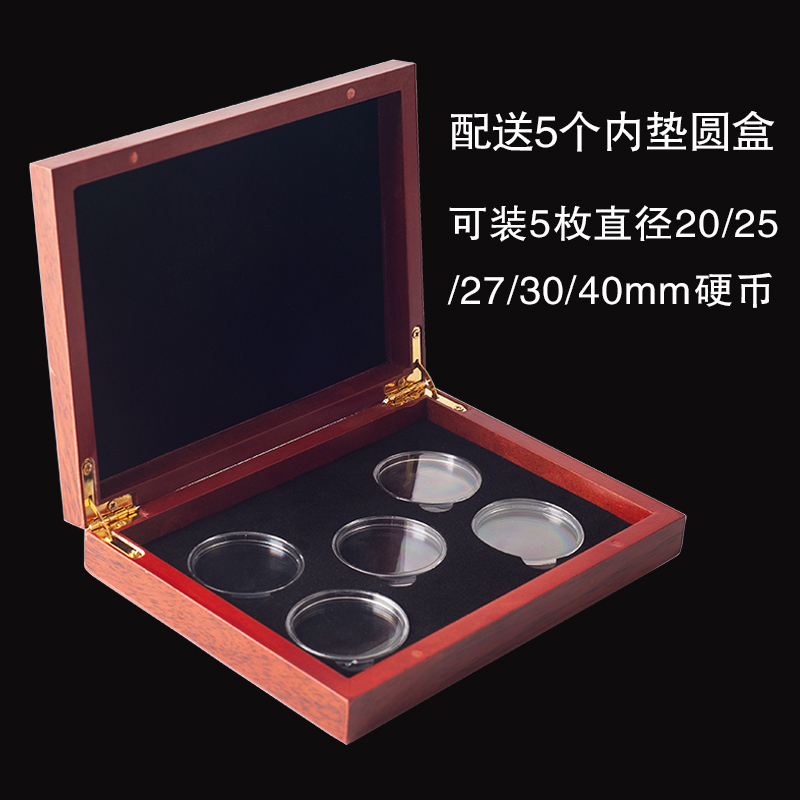 5 pieces of Tiger Taishan Wuyishan commemorative coin collection box Yuan Datou panda coin protection box gift box wooden box