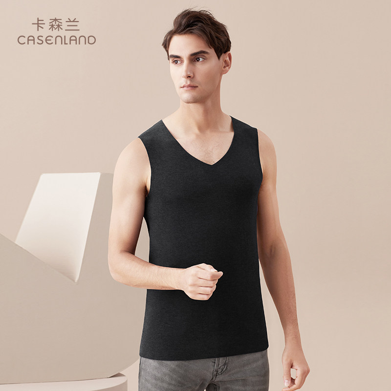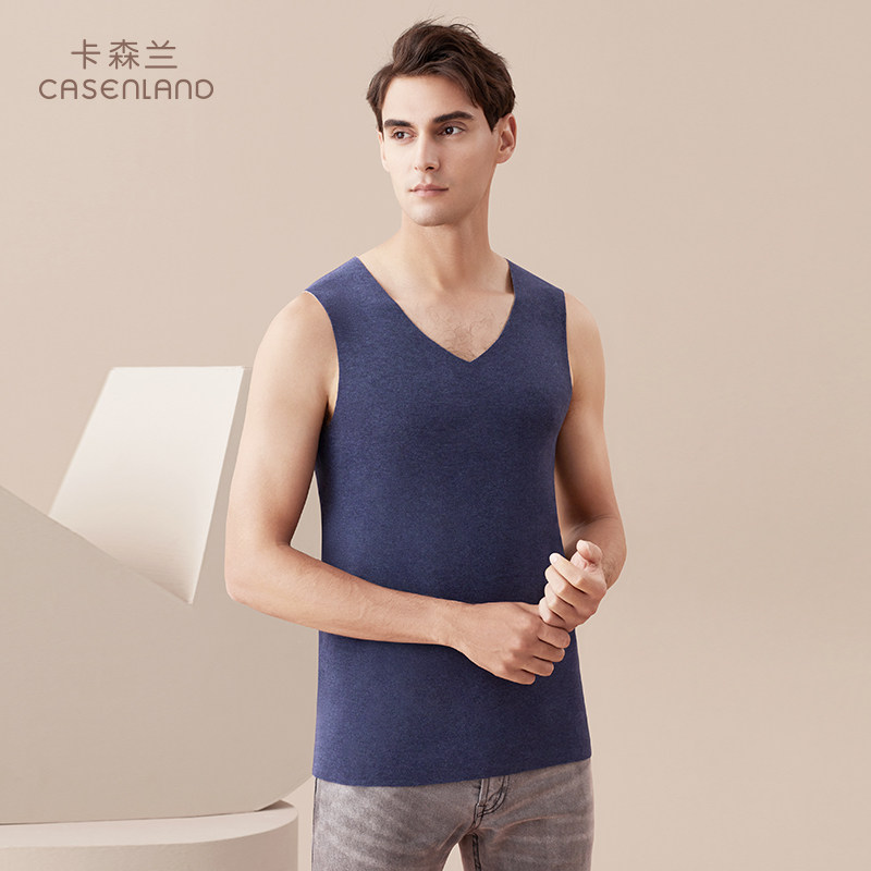 Carsonlan mulberry silk seamless thermal vest men's V-neck plus velvet thick single-piece top bottoming winter vest