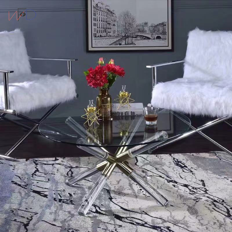 Modern minimalist transparent acrylic round coffee table personality creative small apartment tea table net red INS photo tea table