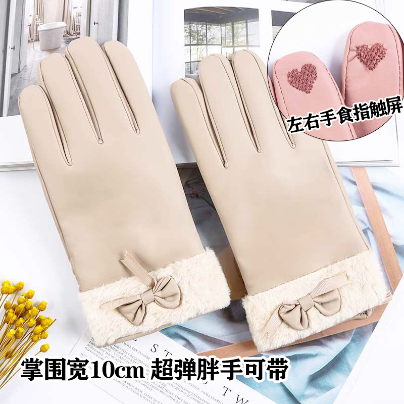 Leather gloves women's winter warm cycling velvet thick waterproof cold windproof area Autumn and winter riding cold touch screen