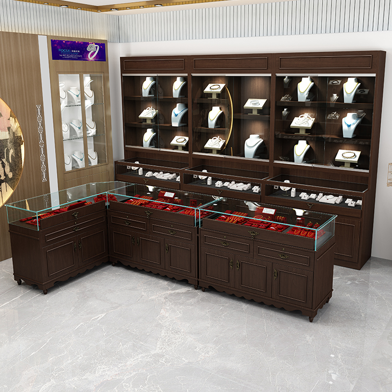 Solid wood jewelry display cabinet jewelry jade jade display cabinet antique antique antique high cabinet display cabinet glass counter