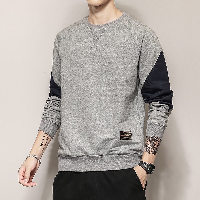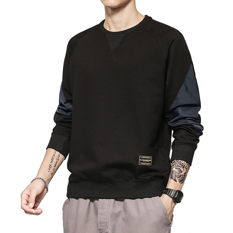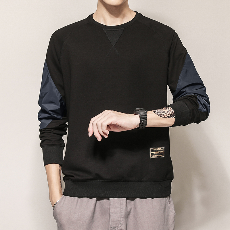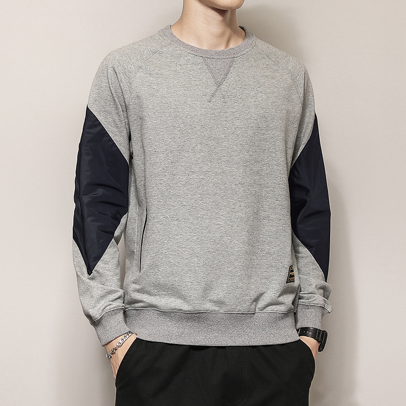 Men's thick T-shirt loose plus velvet thick spring autumn and winter trendy brand new handsome Korean trend stitching long-sleeved T-shirt