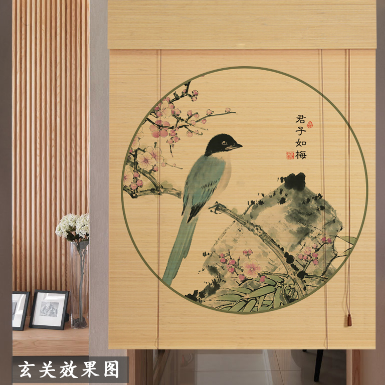 Bamboo curtain printing roller curtain door curtain Chinese style Zen Japanese style tea room porch screen shading lifting partition curtain