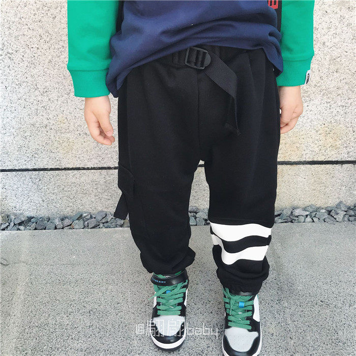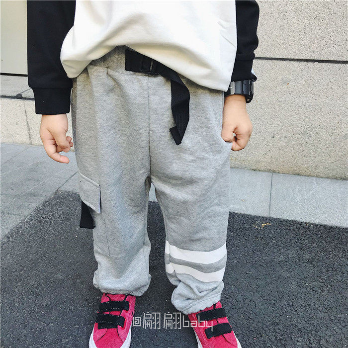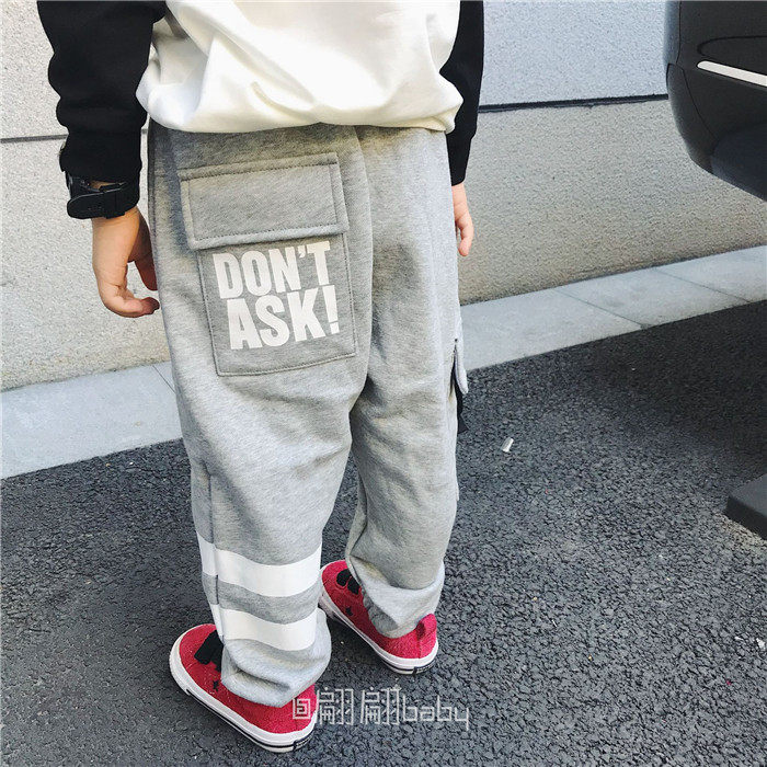100 Two Spring Fall New Day Tide Boys Children Letters Pocket Hair Circles Sports Casual Workwear Pants Wear Pants
