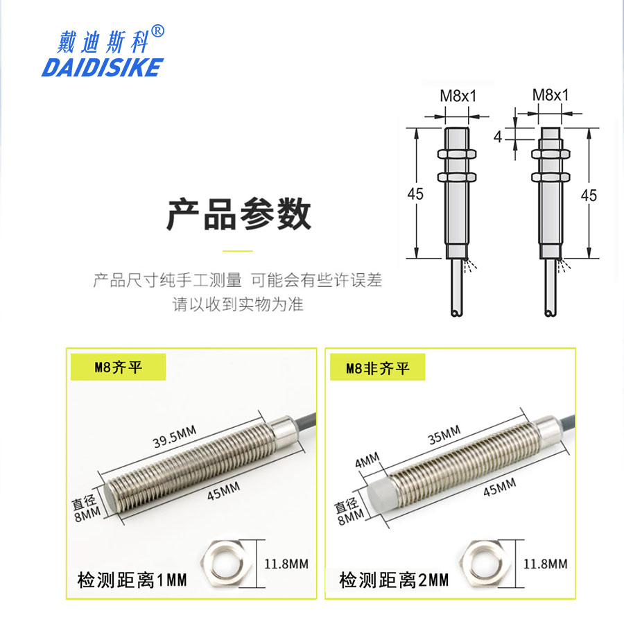 M8 capacitive proximity switch sensor non-flush induction switching material wire instrumental non-metallic plastic DCnpn no-Taobao