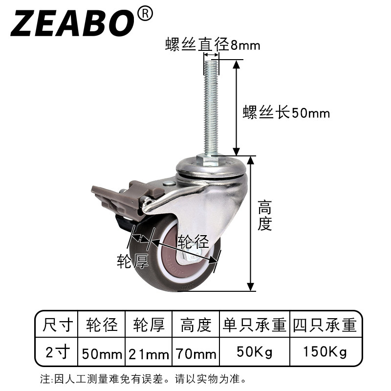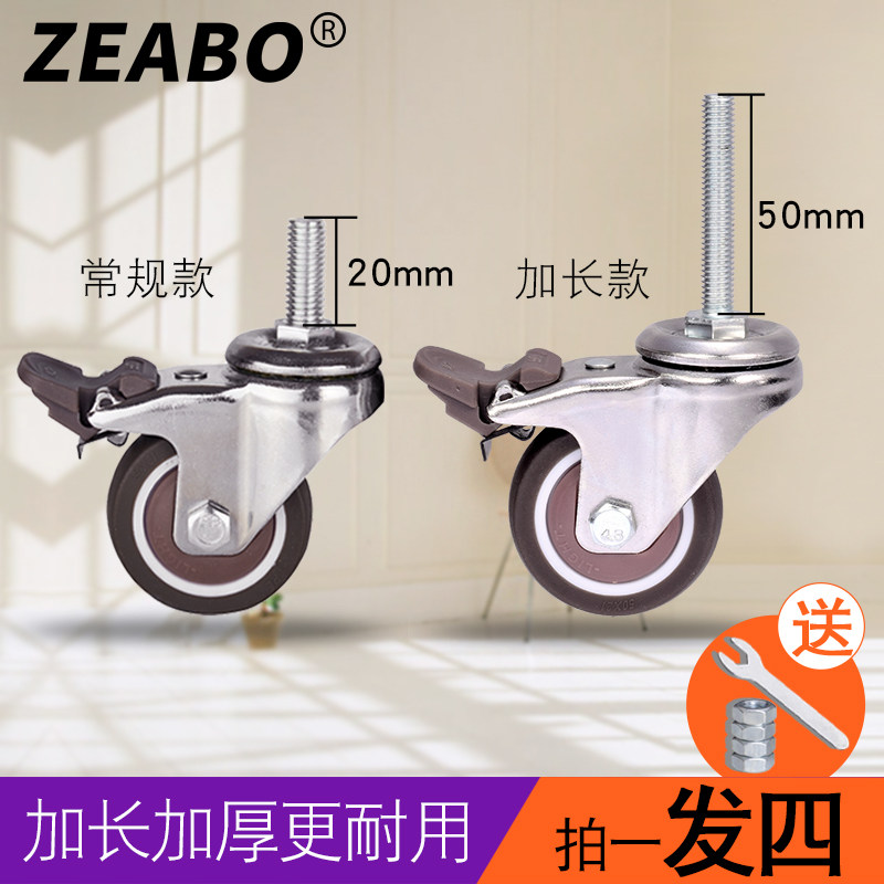 (4 only) plus Filament Rod 2 Inch Screw Wheel M8 Furniture Accessories Universal Wheels With Brake Muted Rubber Wheels