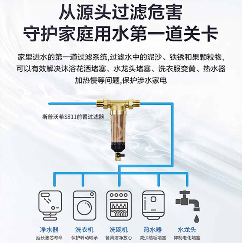 Front filter Home Large-flow full house tap Water pipe filter Anti-rinse into the water purifier of the water