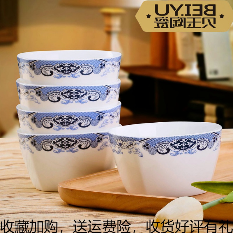 Square Home Eating Bowl Han Style Small Bowl Ceramic Rice Cute Large Horn Porcelain Porridge Bowl Heat Insulation Large Bowl Soup Bowl with Bubbly Noodle Bowl