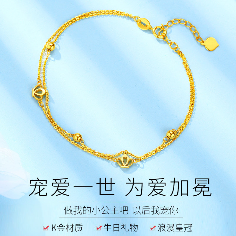 Pour Love New 18k Gold Transit Beads Handmade Female Crown Double Layer Hand Condensed Korean version Jane about personality Birthday Gift