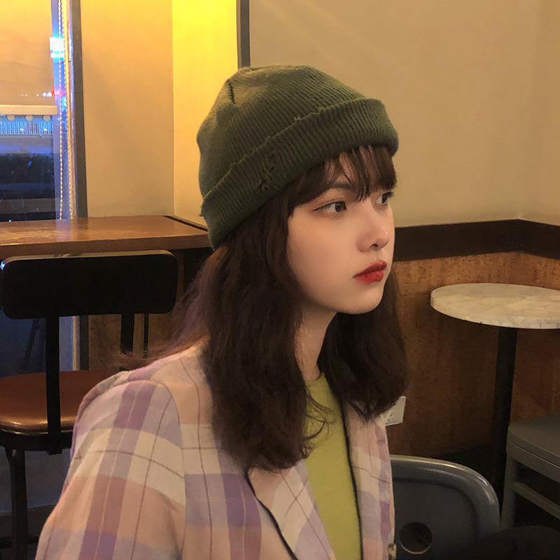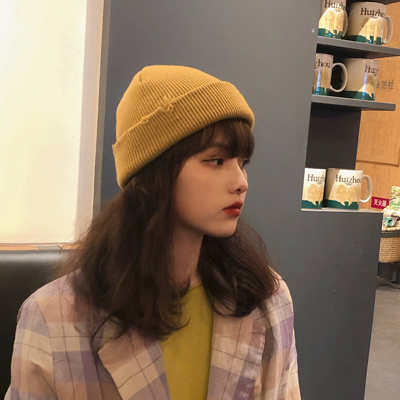 Aijia Micro Han Edition Yuppie Breaking Hole Knit Guapi Hat Men and women Leisure 100 lap Fashion Cold hat Warm Wool Line Hat