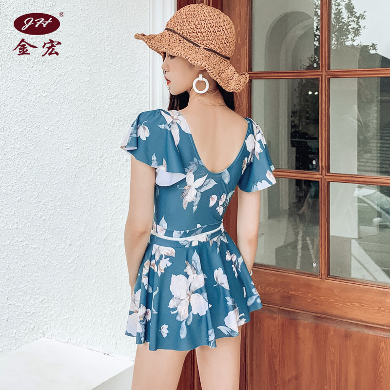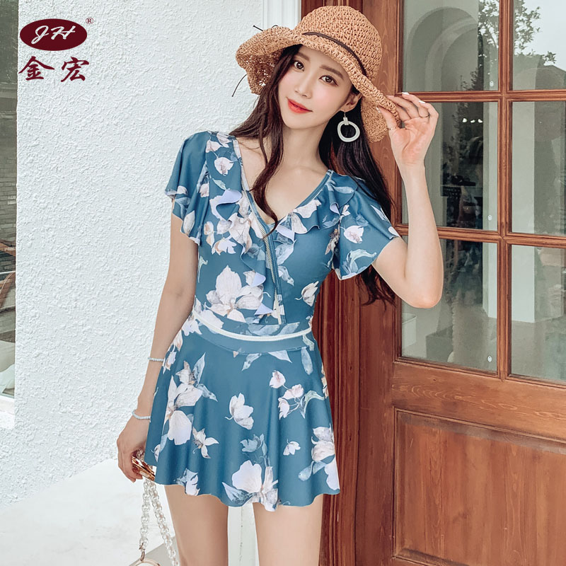 Swimsuit women's fashion large size conservative belly cover thin 2021 new trend Korea ins fairy fan one-piece skirt swimsuit