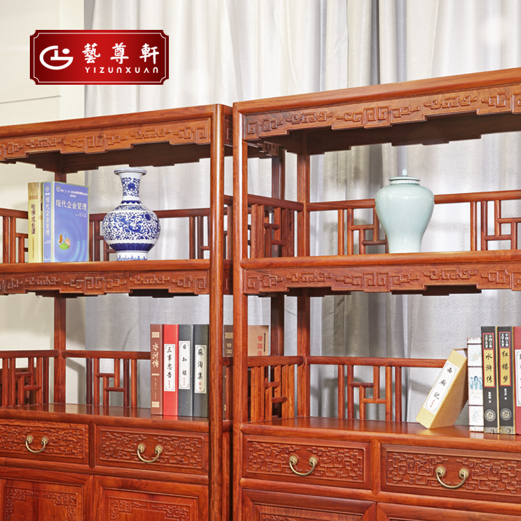 Yizunxuan mahogany furniture good luck accompanied by open bookshelf rosewood large fruit red sandalwood study floor rack