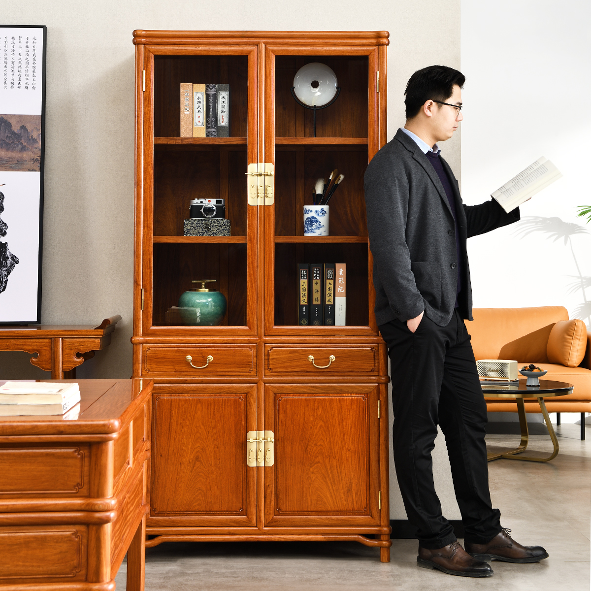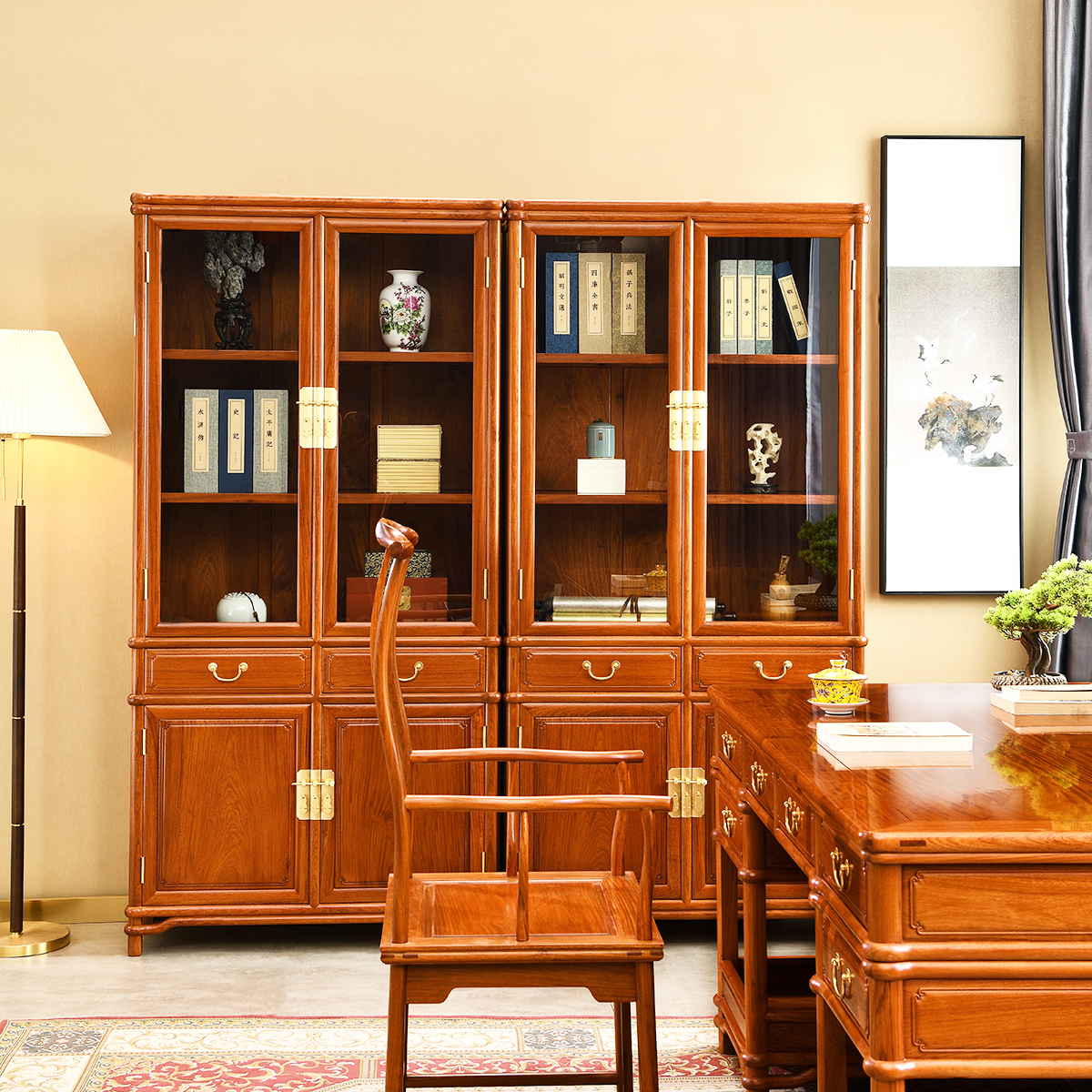 Ming-type bookcase one pair (cabinet door open) Ming-style bookcase one pair (boutique full-panel)