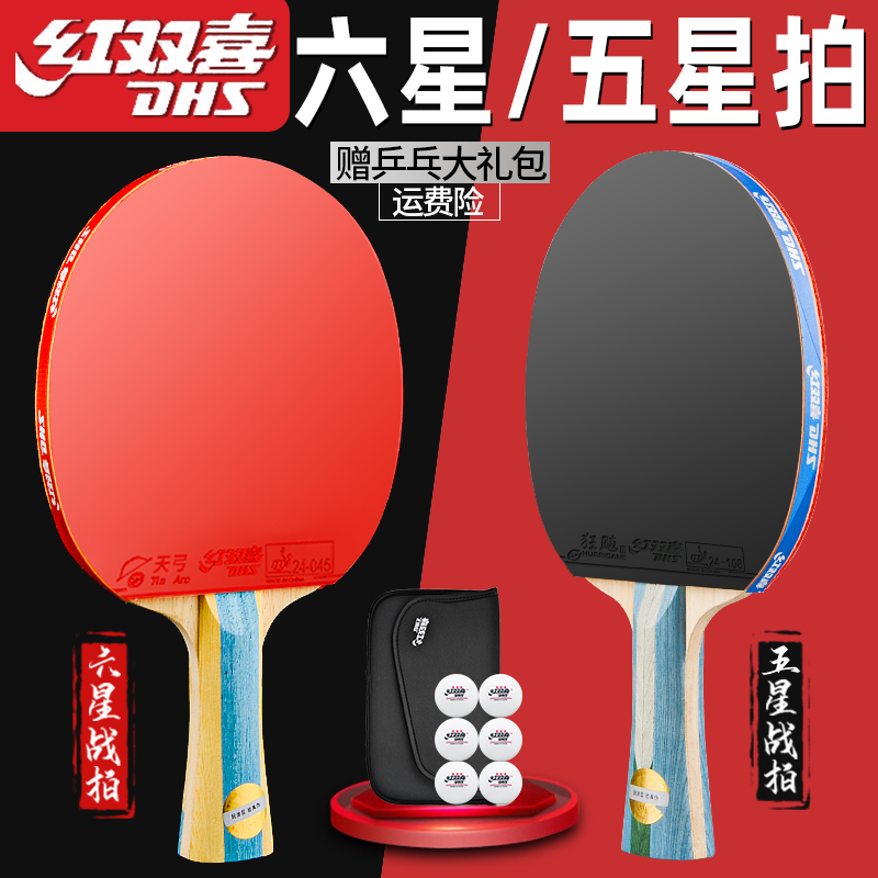 Red Double Happiness table tennis racket Six-star five-star four-star single double 2-shot 6 eight-star table tennis professional level 1 pack
