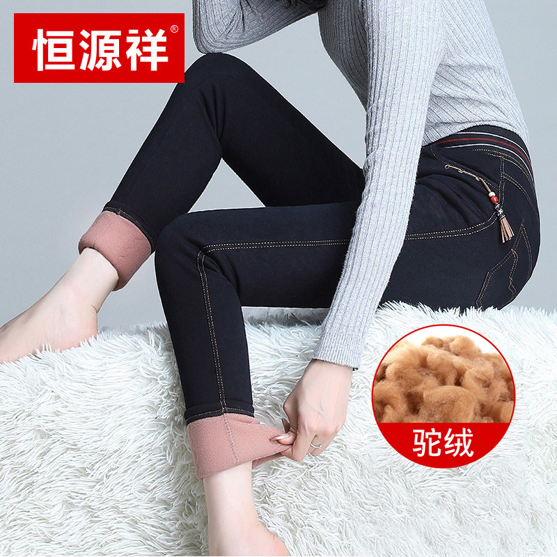 Hengyuan Xiangxiang thick plus jeans female humps high waist outside wearing North East Special Silk to keep warm wool trousers