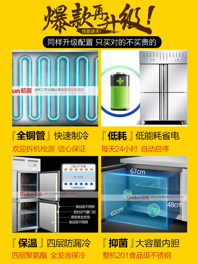 Ai Min Four Doors Fridge Freezer Freezer Commercial Kitchen Refrigerated Frozen Double Temperature Six Doors Fresh Display Cabinet Vertical Stainless Steel
