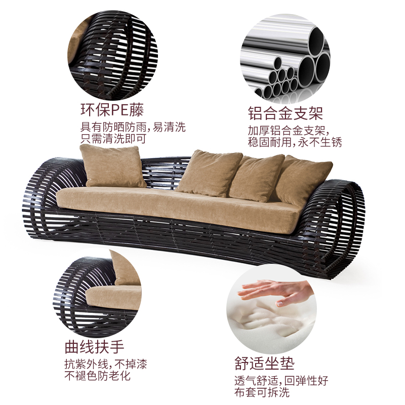 Outdoor rattan sofa creative designer hotel furniture homestay wide rattan three-person leisure sunshade rattan sofa