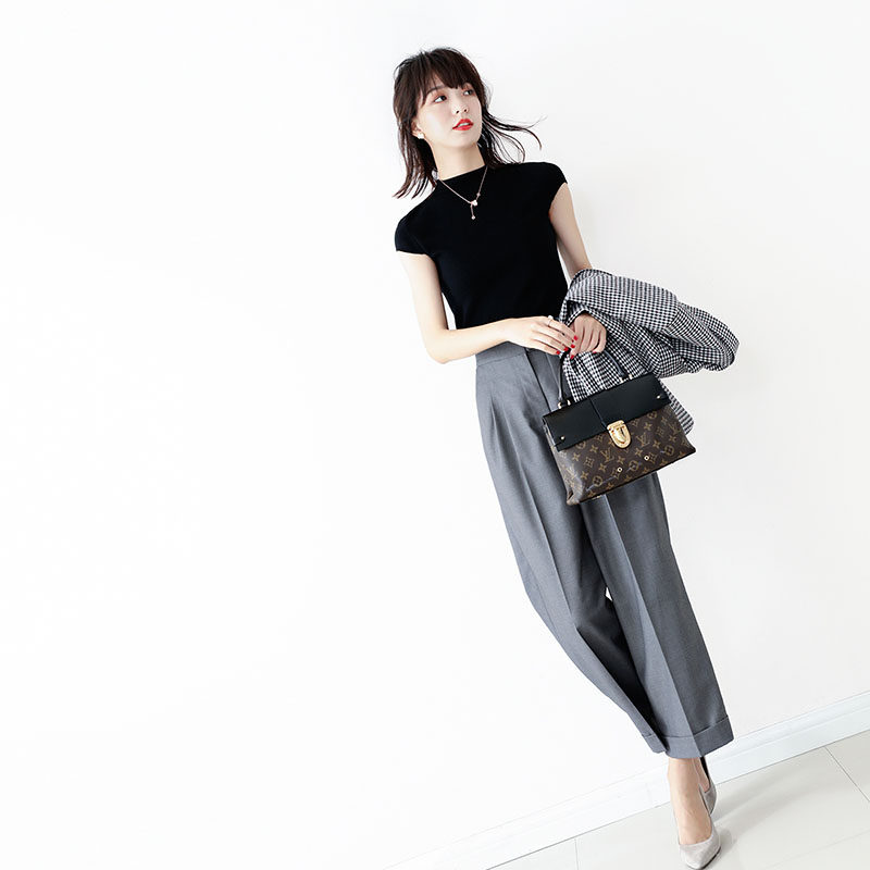 JOLIMENT gray wide leg pants women's high waist hanging 2021 new spring and summer casual loose straight nine-point pants