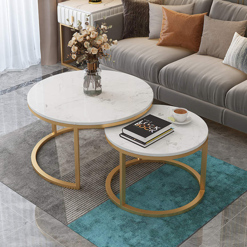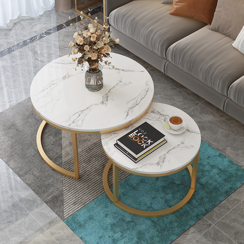 Simple modern rock plate coffee table table Living room household net red round light luxury tea table combination Small apartment Nordic tea table