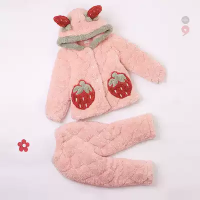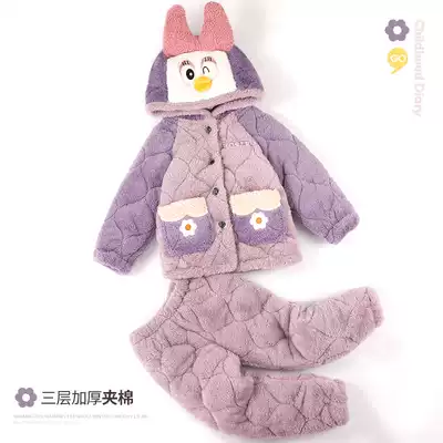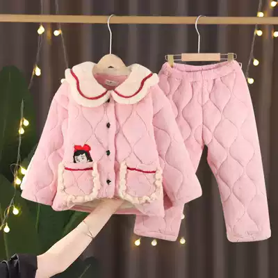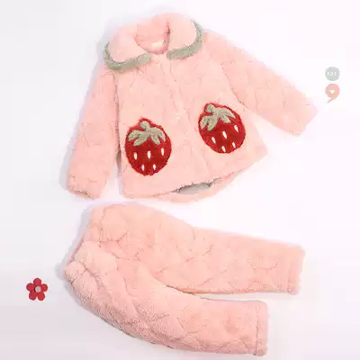 Children's pajamas girls autumn and winter coral velvet thickened three-layer cotton girl baby flannel parent-child suit