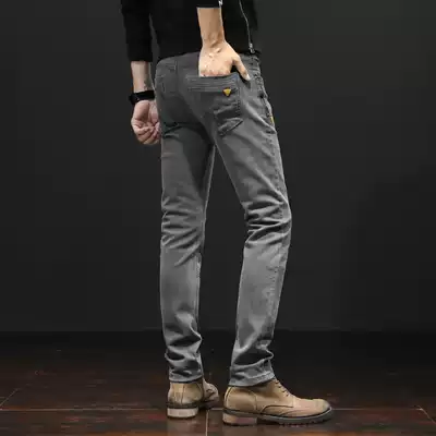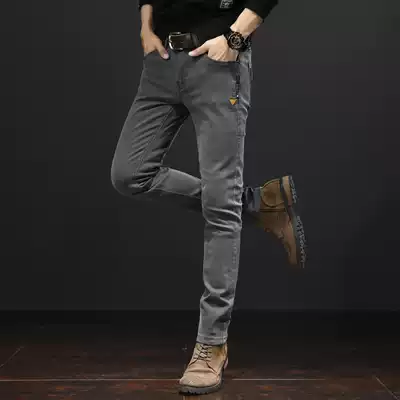 Spring and autumn new jeans men slim pipe pants men Korean trend elastic casual long pants men Gray