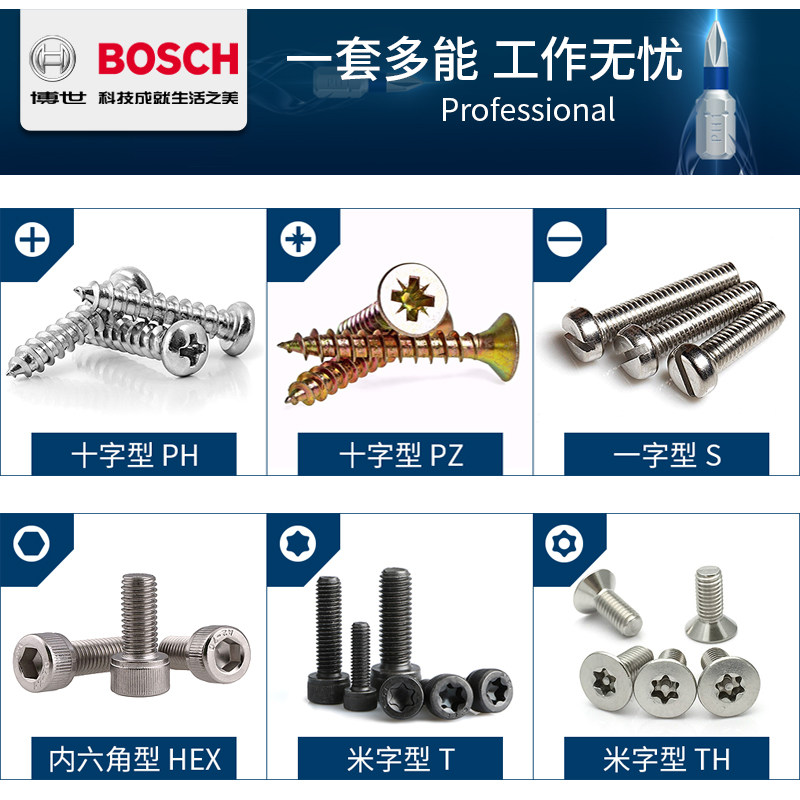 Bosch 11-piece set (200mm stainless steel flexible shaft)Bosch 11-piece set (300mm black flexible shaft)Bosch impact-resistant screwdriver head 10-65mm Bosch impact-resistant screws