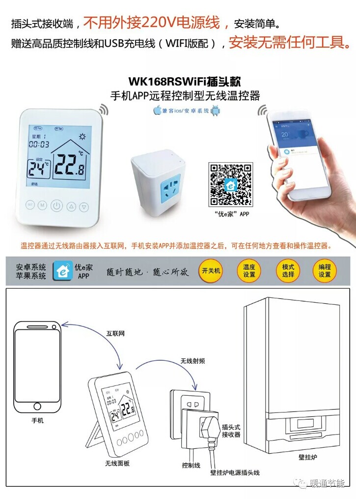 Wall-hung boiler thermostat switch wireless WIFI touch screen Xinyuan SUITTC mobile APP remote control wk168