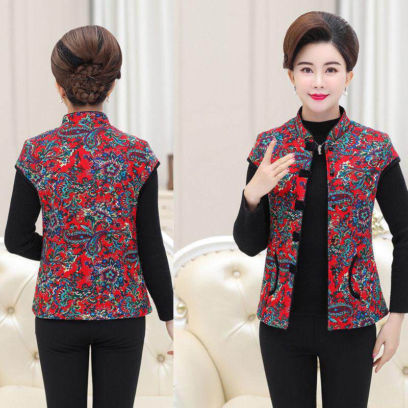 Middle-aged women dress large-yard spring and autumn mom installed loose vest to keep warm shoulder guard grandma Kan shoulder